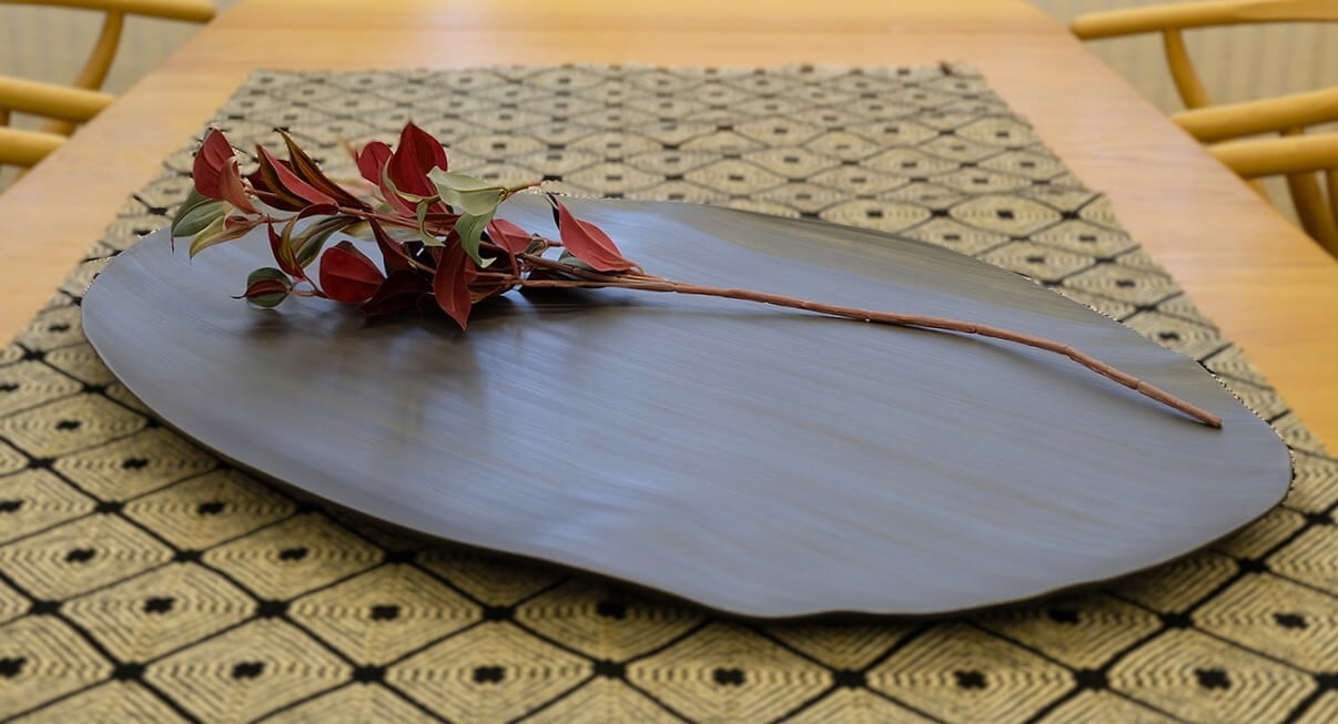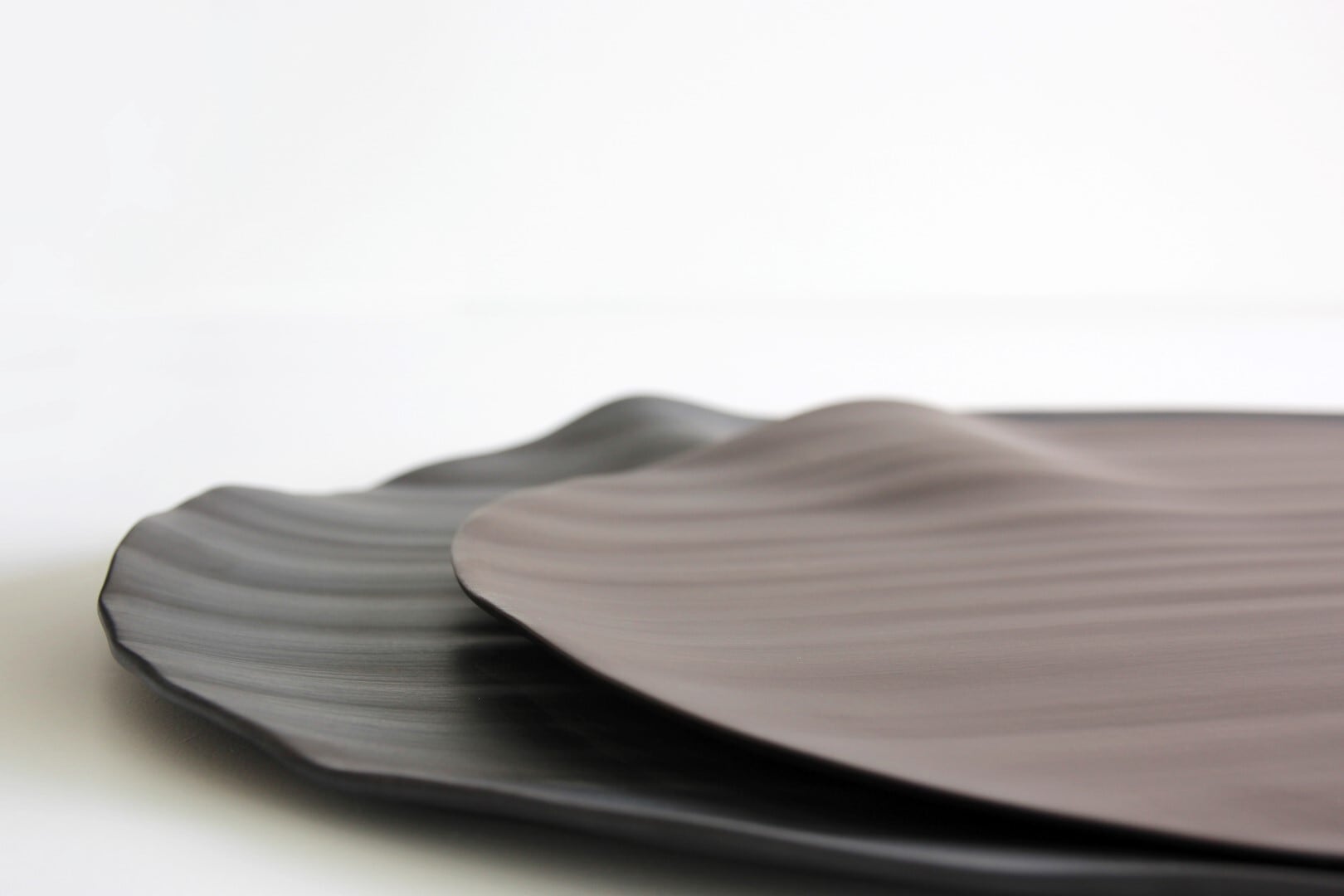 葉っぱのように有機的で薄いフォルムのハンドメイドの陶器製センターピース。シンプルさとモダンなデザインが融合した洗練されたアイテムです。光の加減と見る角度により、色の濃淡が変化します。インテリアに自然に溶け込み、スタイリッシュに空間を彩ります。