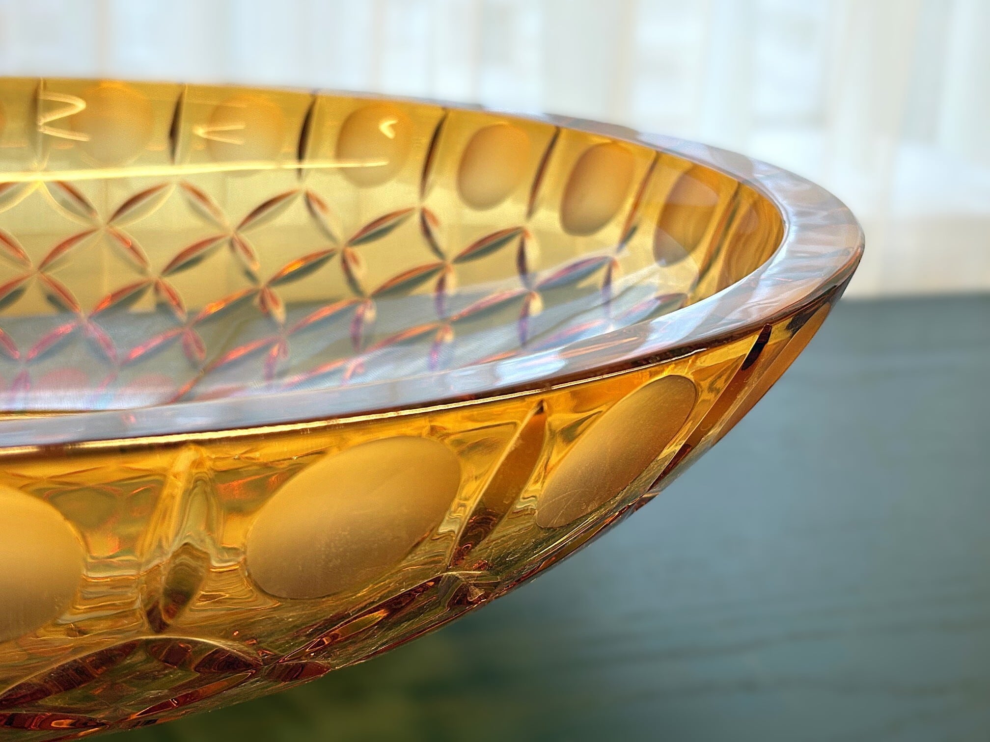 クリスタルガラス センターピース(オブジェ) ROYAL CENTERPIECE(ロイヤル センターピース) アンバー Duccio di Segna(ドゥッチョ ディ セーニャ) Φ50×H12cm