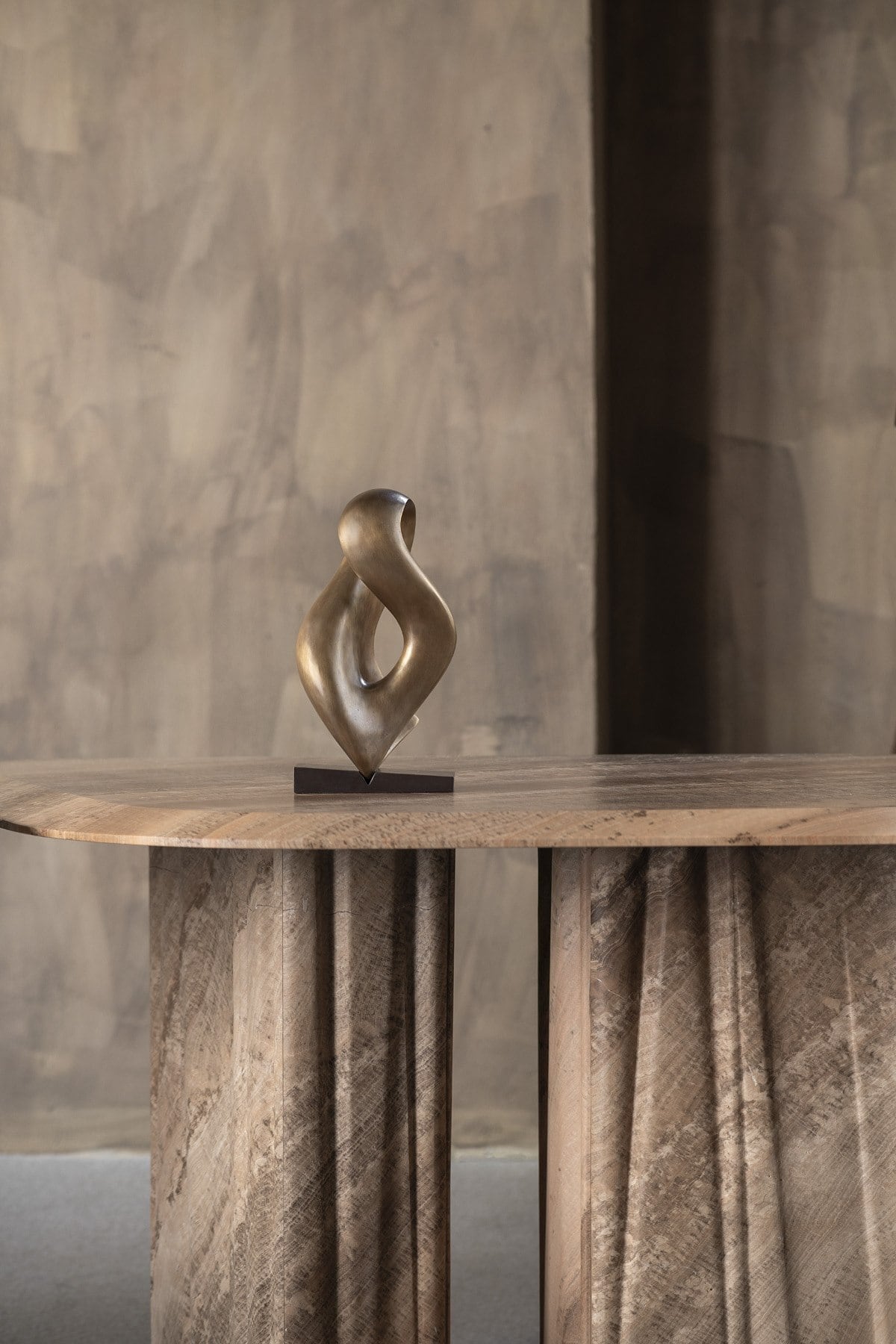 アルマンド・ディ・ヌンツィオによるブロンズの傑作《Incontro(インコントロ)》は、流れるようなフォルムにより無限の象徴を想起させるひとすじのラインを描き出し、生命の循環を表現しています。