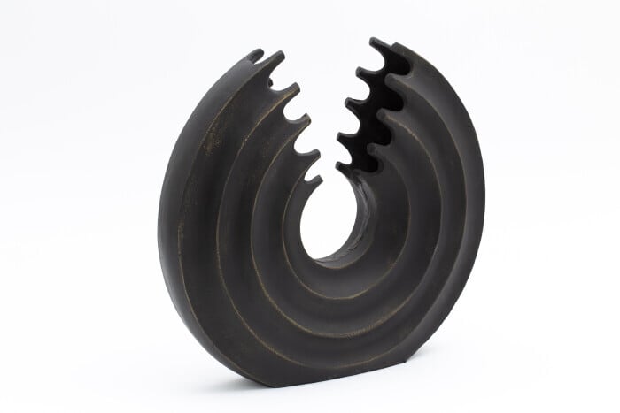 円形のフォルムが印象的な彫刻作品のような佇まい。