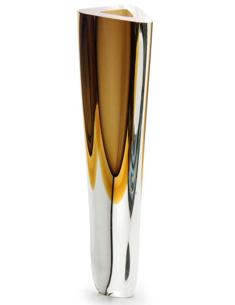ブラジルのガラスアートスタジオCá d’Oro で製造された吹きガラスの3色使いがエレガントな花瓶です。